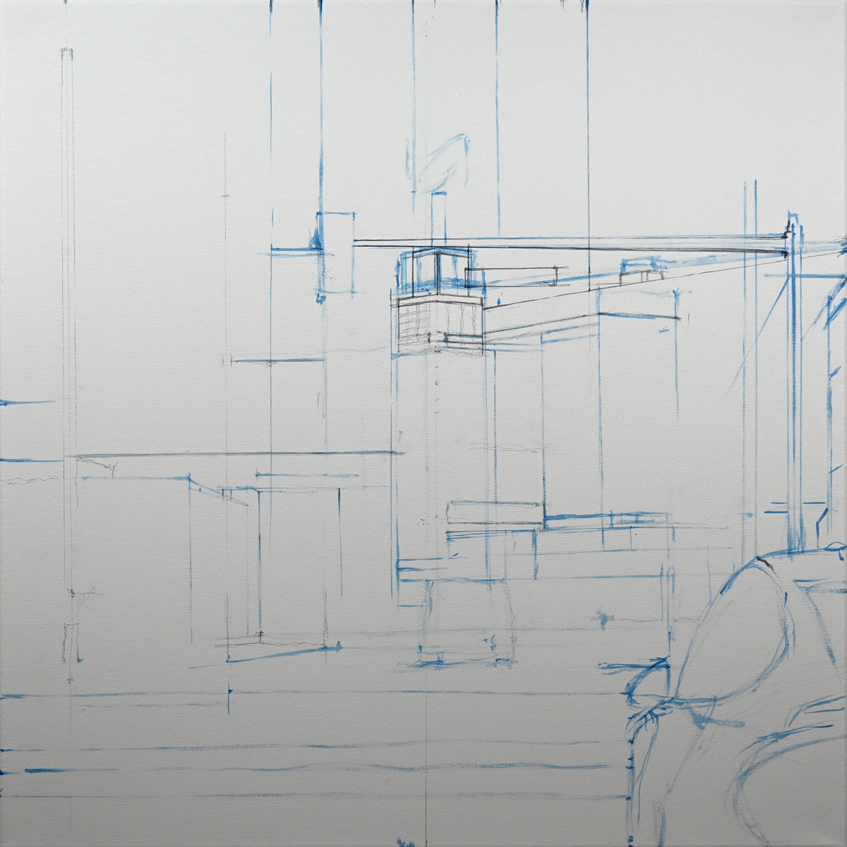 Shanghai Alley, 20″ x 20″ Acrylic on Canvas, in progress. The historic Shanghai Alley is located near the entrance to Vancouver’s Chinatown and is an L shaped roadway which leads south from Pender St, then turns right to exit onto Taylor Avenue. I recently ‘discovered’ this historic building, which is actually the rear facade of 509 Carrall Street, directly on the back-side of the Sam Key Building (the world’s thinnest building), on Pender. You can see the dark grey side of the Sam Key Building with its single arched window on the left of this piece.