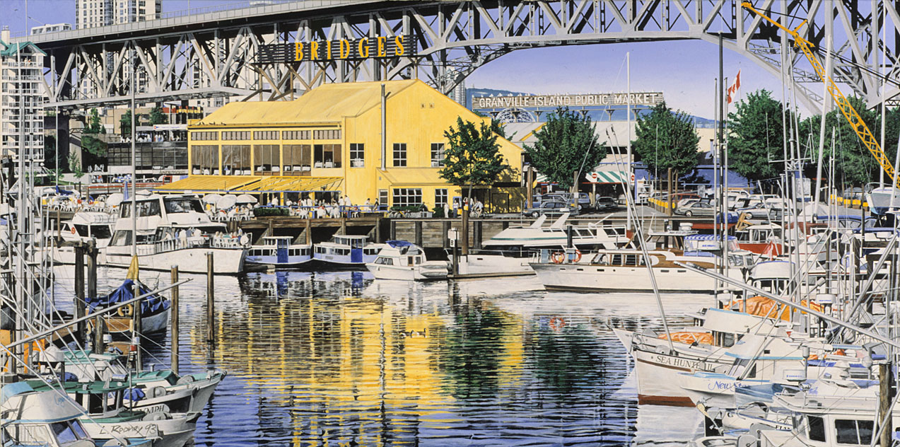 Bridges restaurant and pub can be found on Granville Island in Vancouver. In my second year at Emily Carr College of Art and Design, the school moved to Granville Island and myself and other students would occasionally gather at the Bridges Pub.