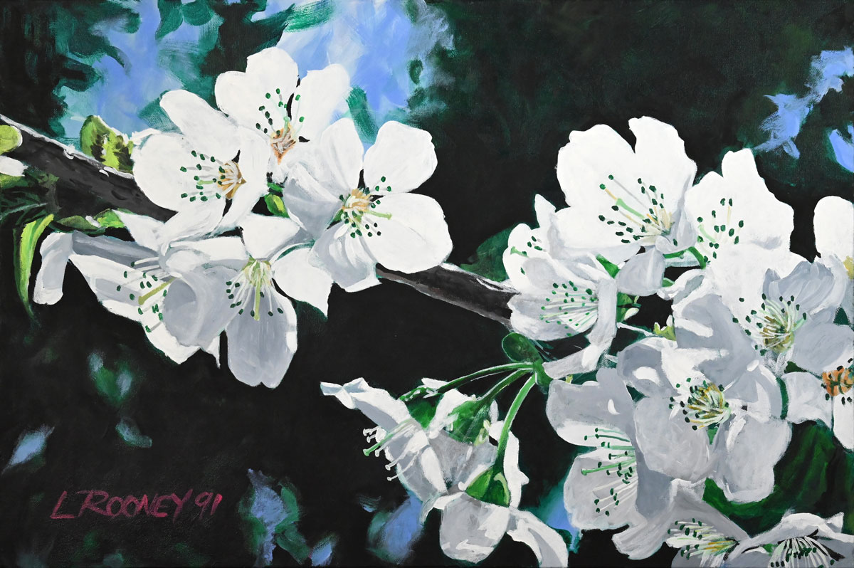 Cherry Blossoms – 1991. Acrylic on canvas. Original painting size: 30″ x 20″ (76.2 x 50.8 cm)