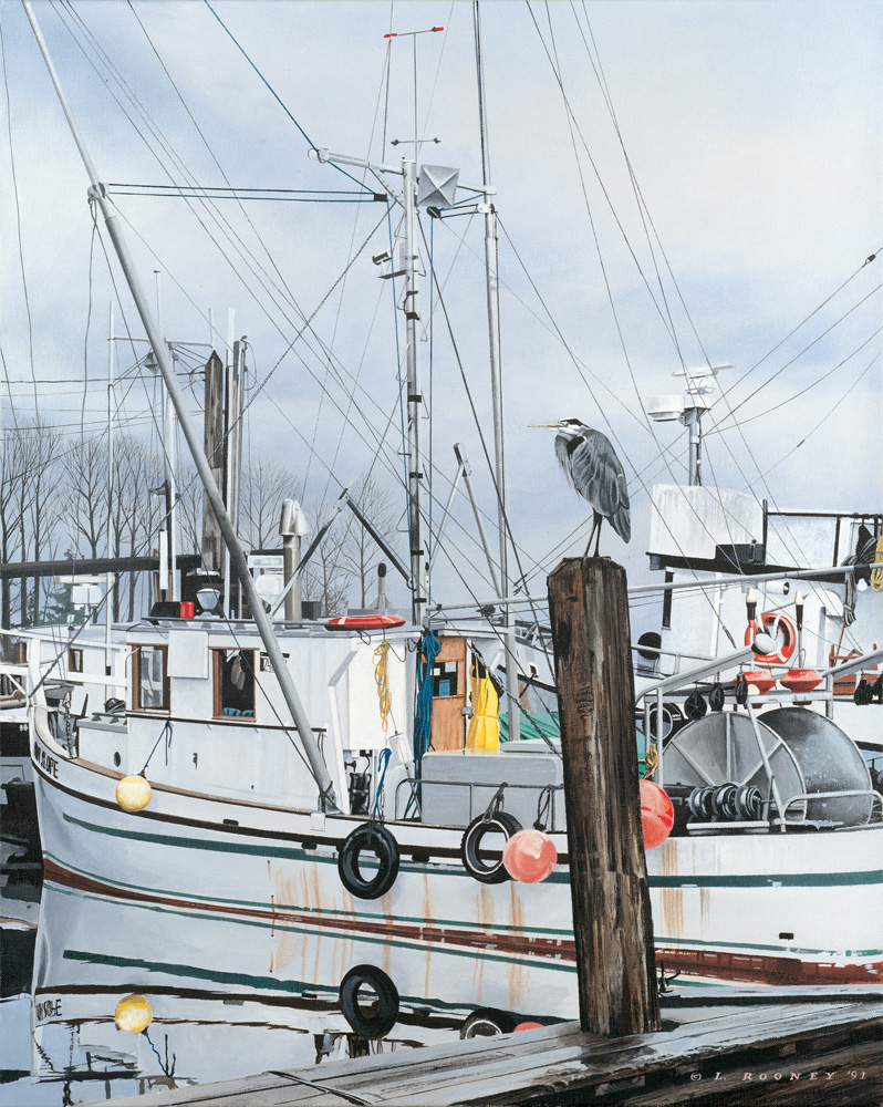 Queensbourgh Fishermen – 1991. Acrylic on canvas. Original painting size: 24″ x 30″ (61 x 76.2 cm).