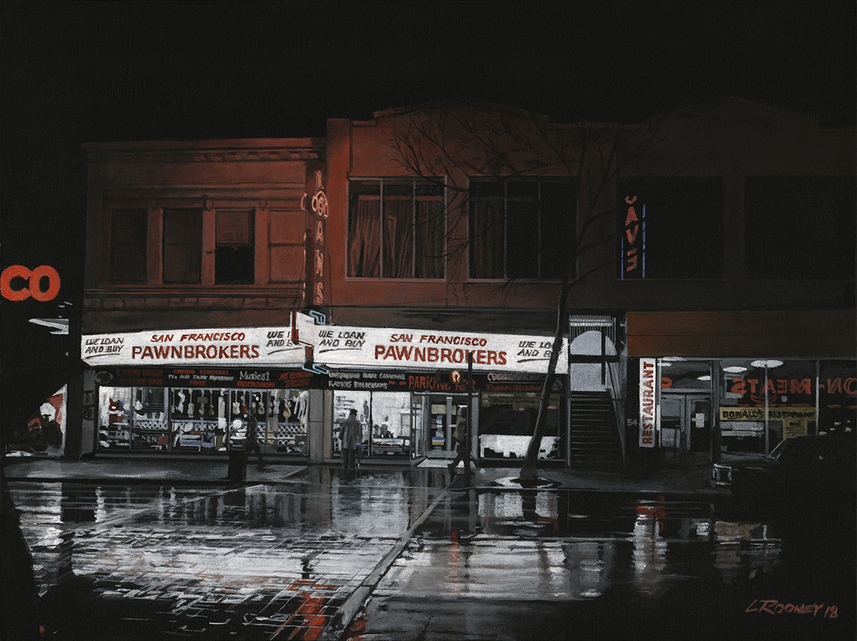 San Francisco Pawnbrokers – 2019. Acrylic on canvas. Original painting size: 24″ x 18″ (61 cm x 45.7 cm)